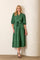 Forest Green Floral Jacquard Button Front Tiered Dress