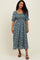 Forest Green Floral Smocked Puff Sleeve Midi Dress