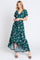 Forest Green Floral Wrap Front V-Neck Hi-Low Midi Dress