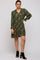 Forest Green Leaf Print Long Sleeve Dress