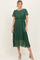 Forest Green Leaf Print Pleated Midi Dress