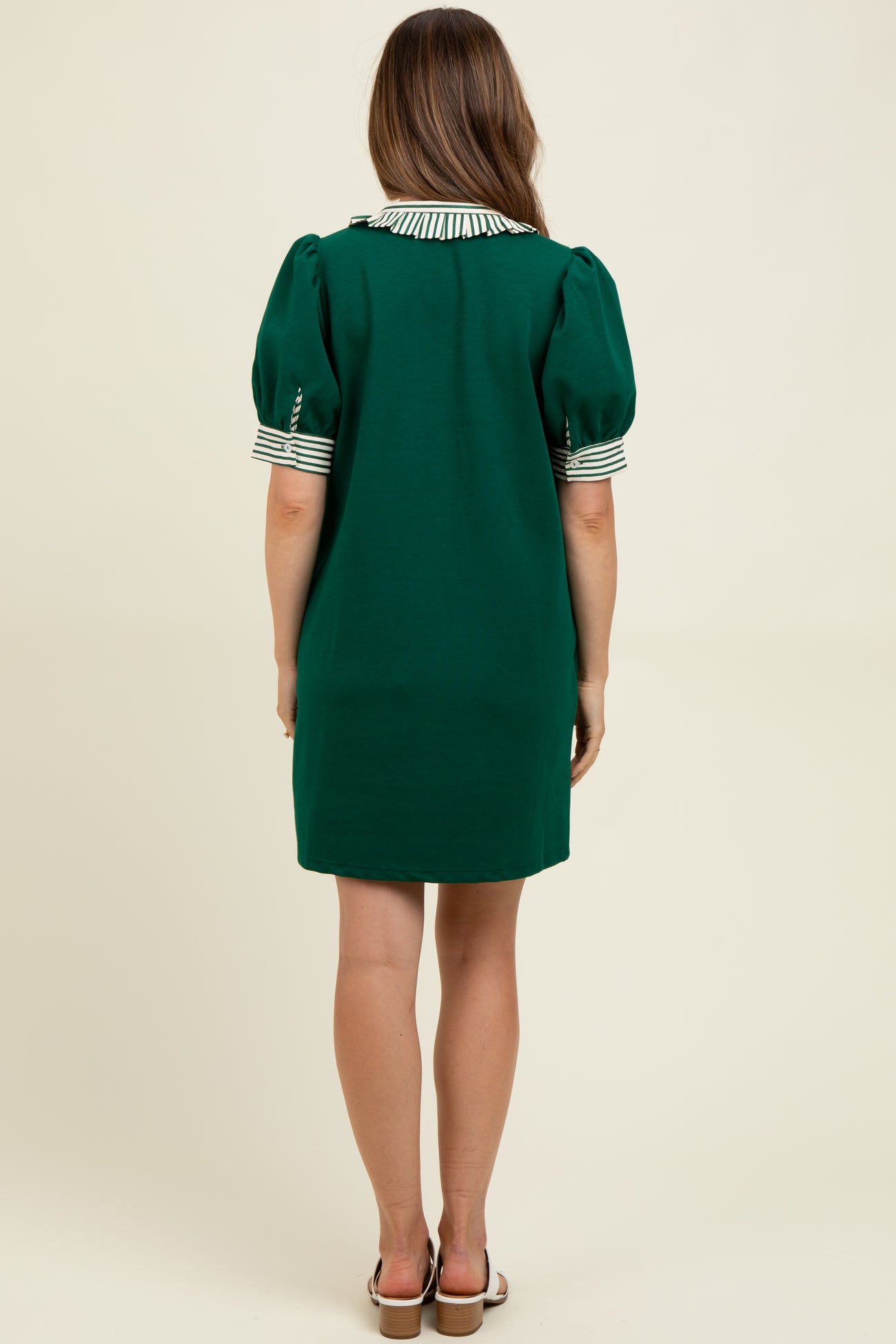 Forest Green Mock Neck Contrast Striped Trim Maternity Mini Dress