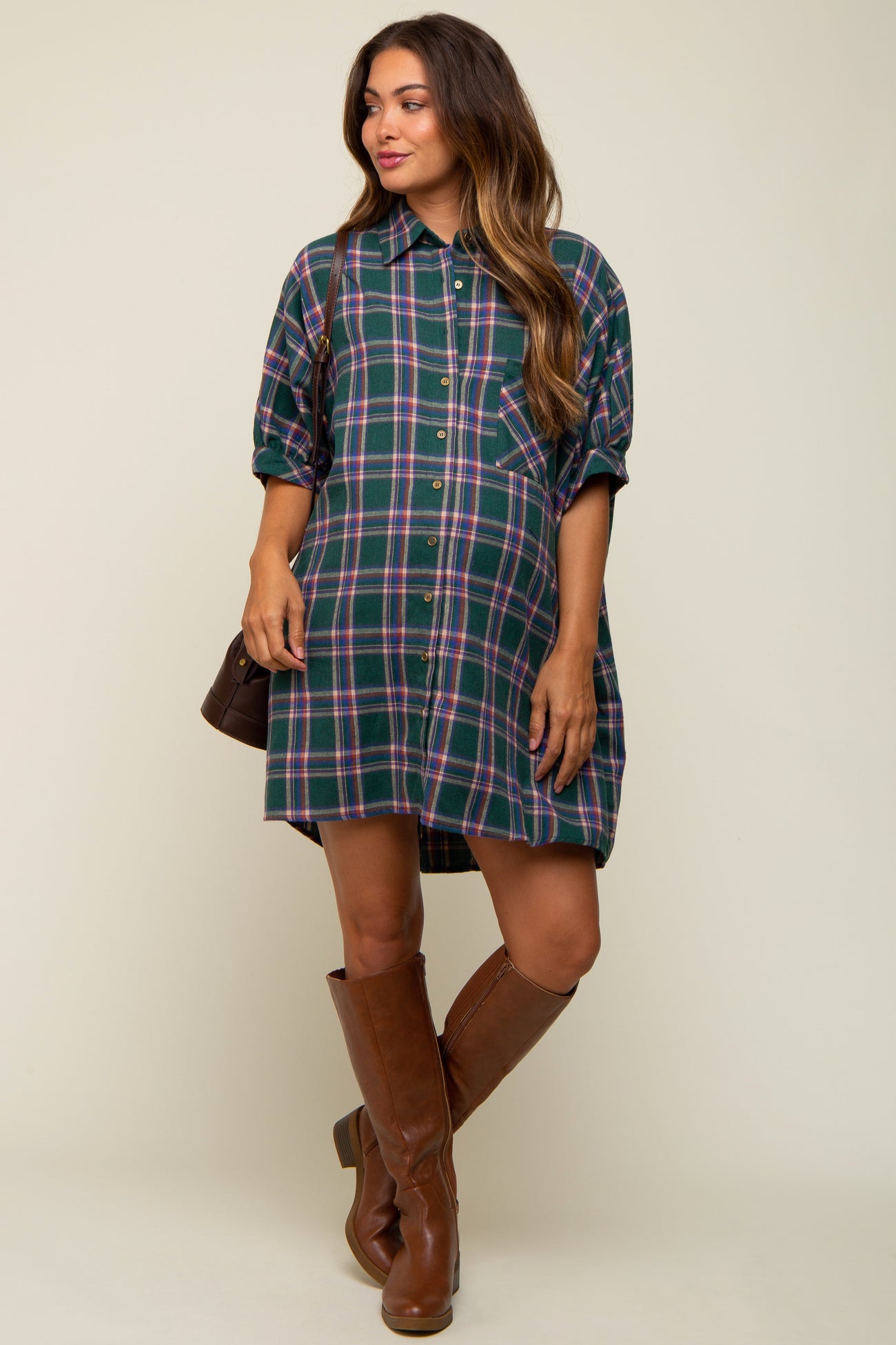 Forest Green Plaid Oversized Maternity Mini Dress
