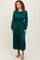 Forest Green Pleated Satin Smocked Waist Midi Dress