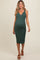 Forest Green Ribbed Fitted Sleeveless Snap Button Maternity Dress