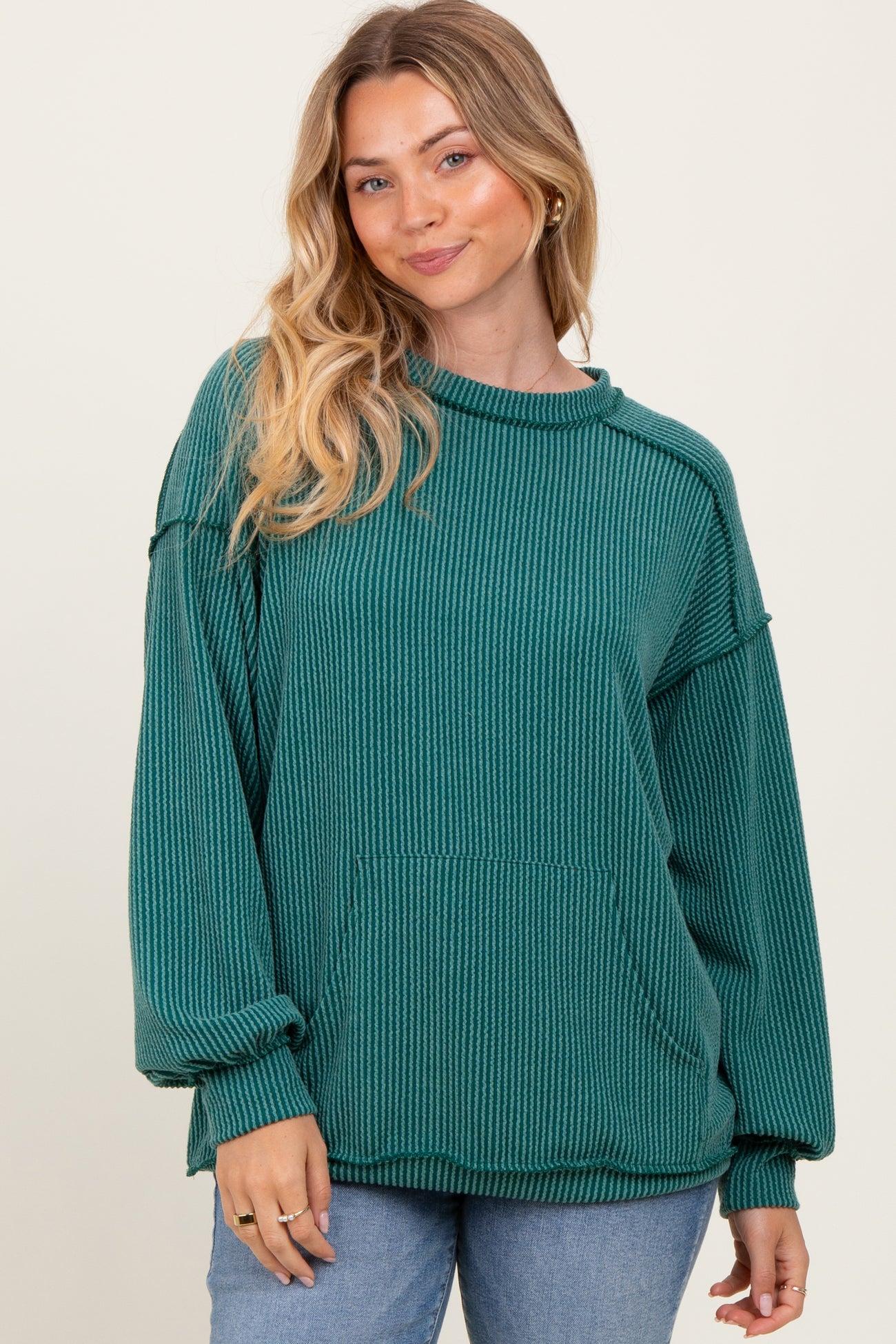 Forest Green Ribbed Knit Front Pocket Maternity Pullover