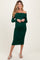 Forest Green Ribbed Knit Off Shoulder Fold Over Maternity Midi Dress