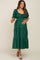 Forest Green Shirred Front Tie Short Sleeve Tiered Maternity Midi Dres