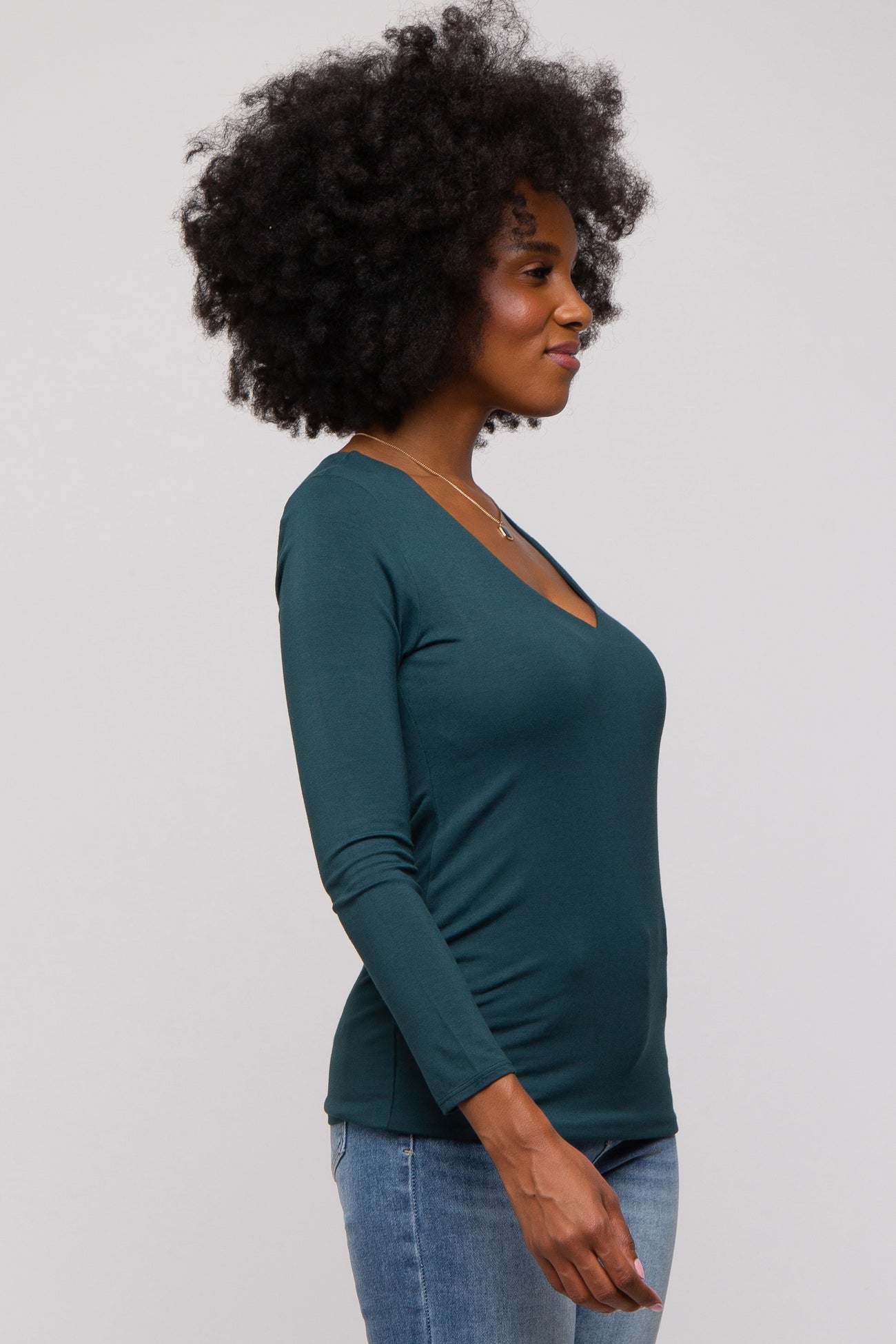 Forest Green V-Neck Long Sleeve Top
