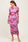 Fuchsia Floral Mesh Overlay Ruched Midi Dress