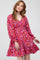 Fuchsia Floral Smocked Front Ruffle Trim Dress