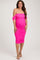 Fuchsia Off Shoulder Sleeveless Ruched Mesh Maternity Midi Dress