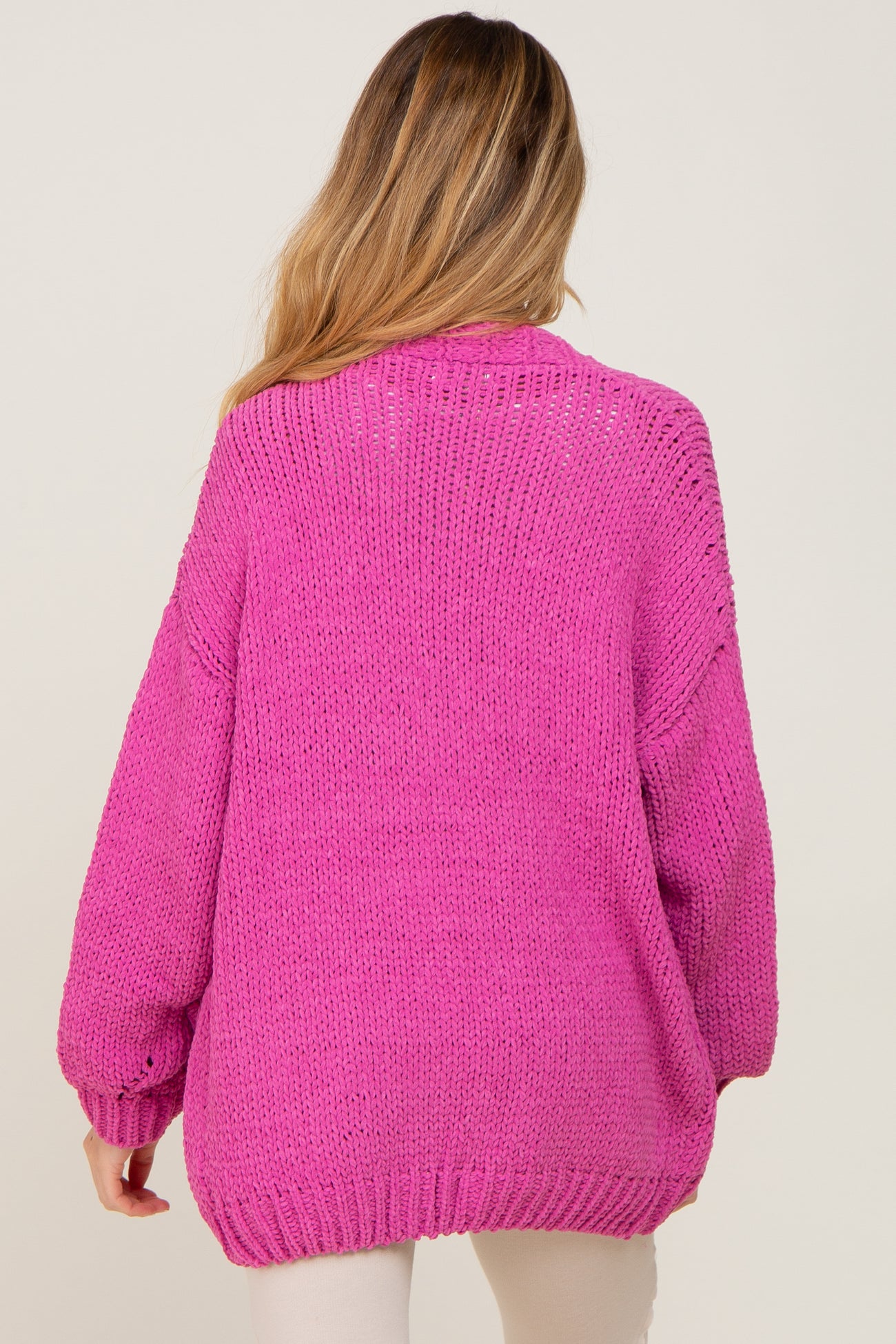 Fuchsia Oversized Bubble Sleeve Maternity Cardigan