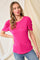 Fuchsia Ribbed Ruched Short Sleeve Top