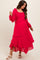 Fuchsia Smocked Ruffle Long Sleeve Maternity Midi Dress