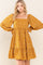 Gold Floral Chiffon Square Neck Ruffle Hem Dress