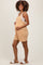 Gold Solid Ribbed V-Neck Sleeveless Front Pocket Maternity Romper