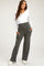 A pair of solid maternity yoga pants featuring side pockets and a bellyband.
