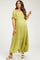 A solid maternity maxi dress with short sleeves, v-neckline, button detail on chest, and tiered skirt. Dress is double lined.