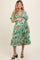 Green Embroidered V-Neck Short Pom Sleeve Maternity Midi Dress