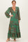 Green Floral Chiffon V-Neck Long Sleeve Maxi Dress