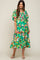 A floral print maternity midi dress featuring a smocked top, short, ruffled puff sleeves, a tiered skirt, a square neckline and a ruffle hem.