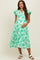 Green Floral Ruffle Sleeve Tiered Maternity Midi Dress