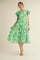 Green Floral Ruffle Sleeve Tiered Midi Dress