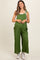 Green Linen Shoulder Tie Maternity Jumpsuit