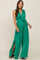 Green Satin V-Neck Side Slit Maternity Jumpsuit
