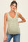 Stay comfortable and stylish throughout your pregnancy with our Green Striped Fitted Maternity Tank Top. Featuring a flattering V-neckline and a button-front detail, this ribbed tank hugs your baby bump with gentle stretch for a perfect fit. The soft green and white horizontal stripes add a fresh, casual vibe, ideal for layering or wearing alone on warm days. Made with breathable, stretchy fabric, it offers all-day comfort and easy movement. Pair it effortlessly with jeans or maternity shorts for a trendy, everyday look you'll love. Perfect for moms-to-be who want comfort without compromising style!