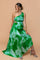Green Watercolor Satin Pleated One-Shoulder Asymmetrical Maternity Midi Dress