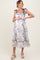 Grey Blue Floral Shoulder Tie Maternity Midi Dress