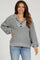 A knit maternity sweater with front functioning buttons, long drop shoulder sleeves, and exposed seams.