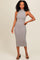 Grey Ribbed Knit Mock Neck Fitted Dress