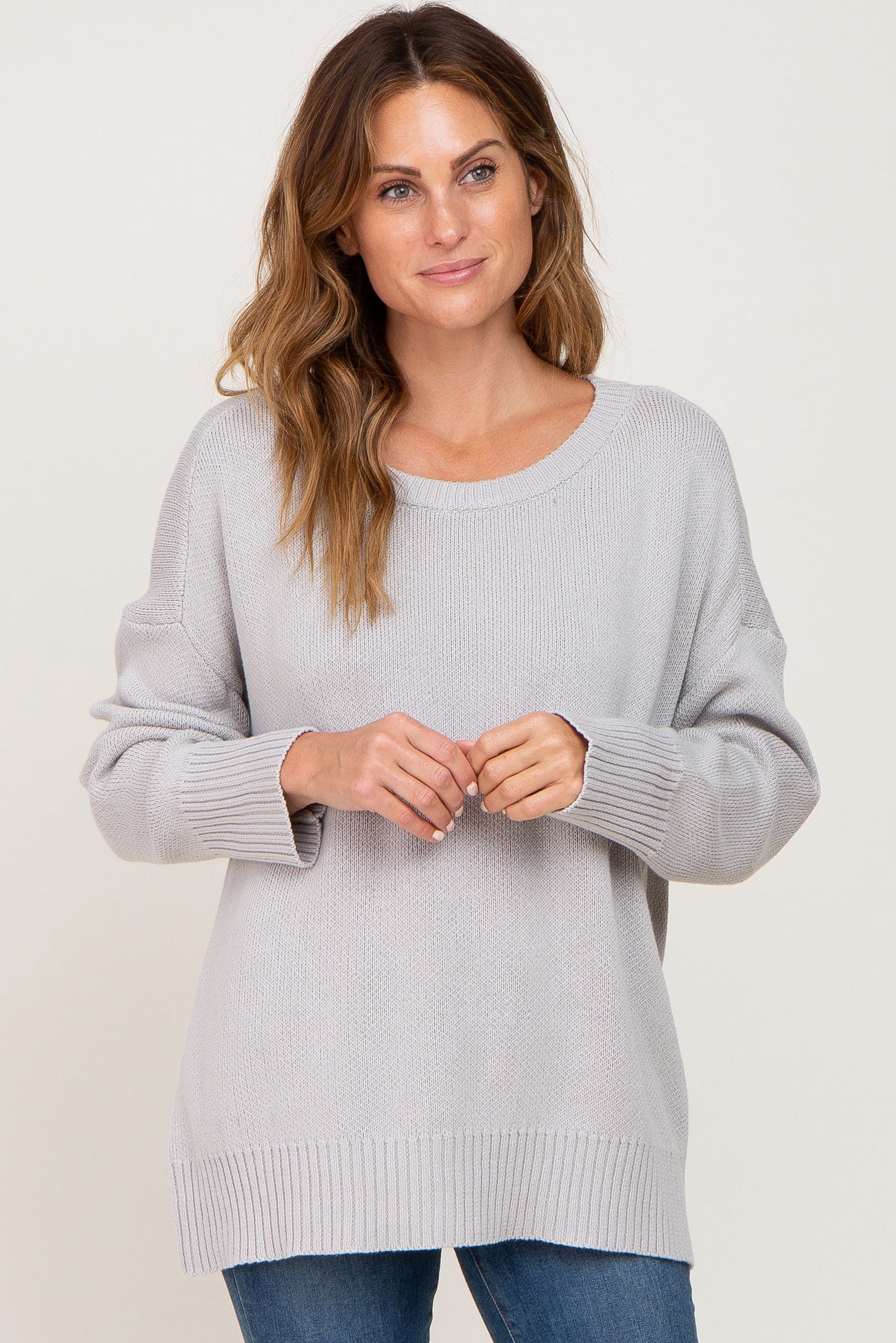 A solid hued maternity sweater featuring a crew neckline, long sleeves and ribbed trim.