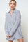 Details A striped romper featuring a collar, front functioning buttons, and long cuffed sleeves. Content + Care