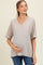 Grey Striped Oversized V-Neck Front Pocket Maternity T-Shirt