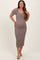 Grey Textured Square Neck Puff Sleeve Maternity Midi Dress
