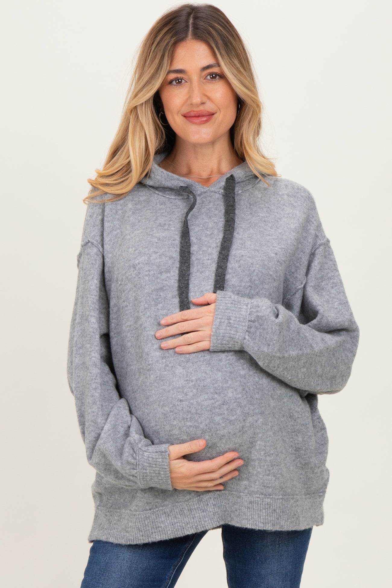 Heather Grey Brushed Knit Oversized Maternity Hoodie