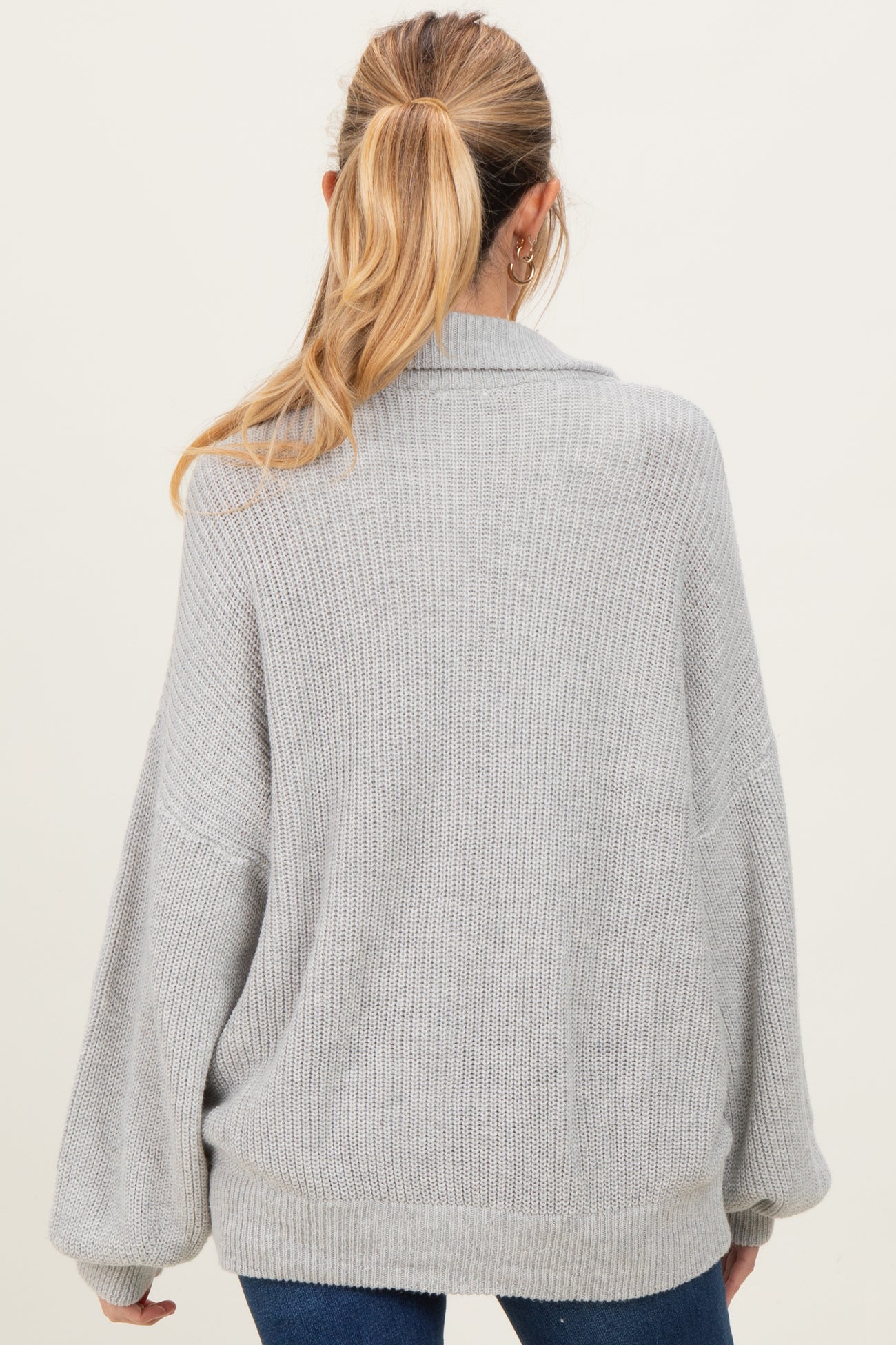 Heather Grey Oversized Zip Up Maternity Cardigan