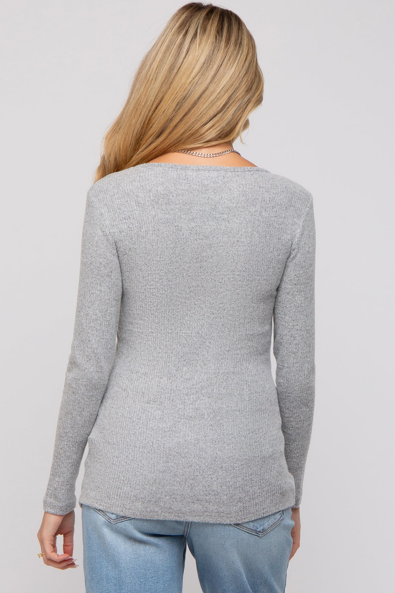 Heather Grey Ribbed Crossover Maternity/Nursing Top