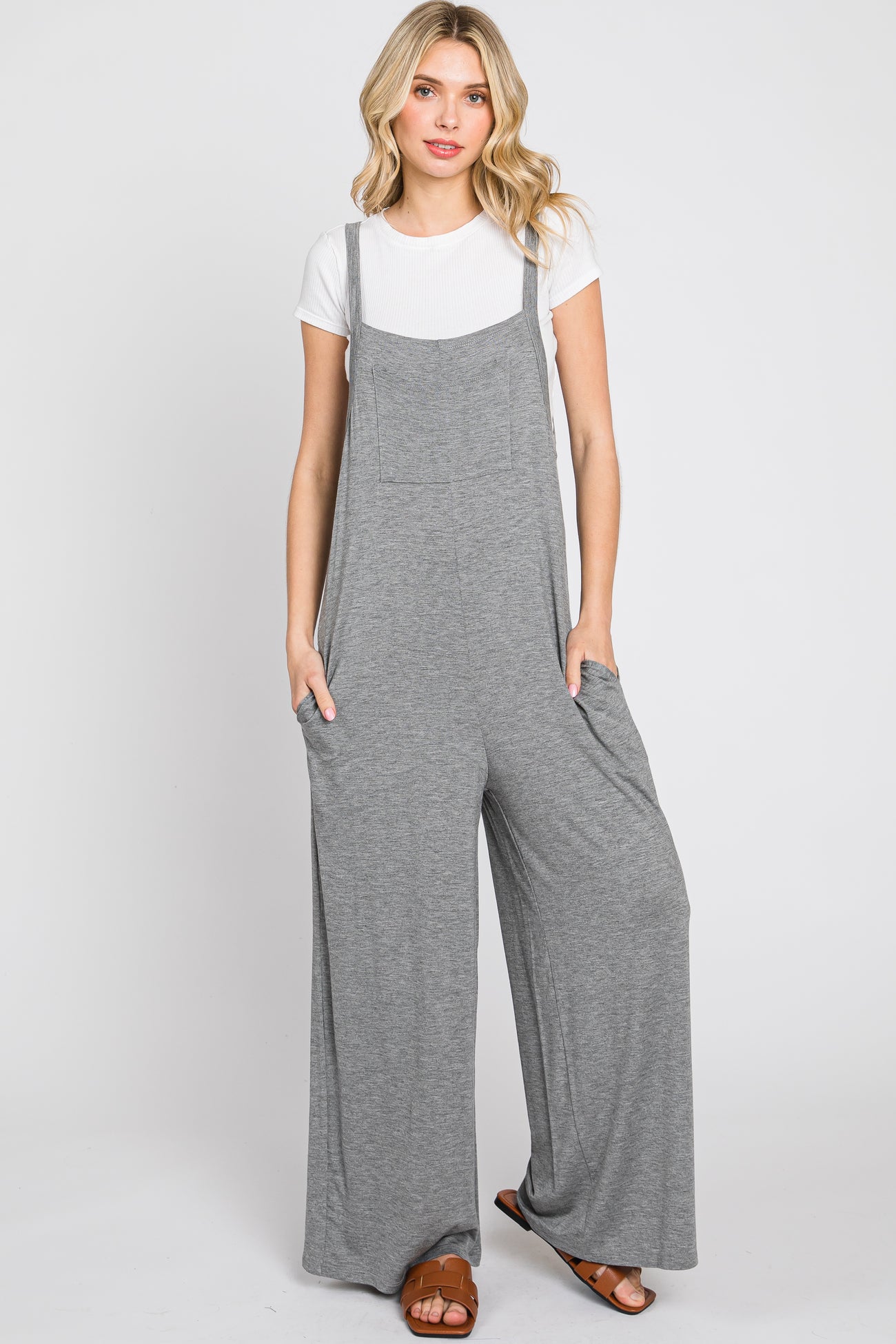 Heather Grey Sleeveless Pocketed Wide Leg Jumpsuit
