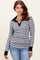 Heather Grey Striped Ribbed Collared Long Sleeve Top