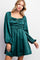 Hunter Green Pleated Bubble Sleeve Satin Mini Dress