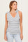Ivory/Black Striped Ribbed V-Neck Shoulder Tie Sleeveless Top