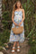 Ivory/Blue Leaf Printed Contrast Piping Detail Maternity Midi Dress