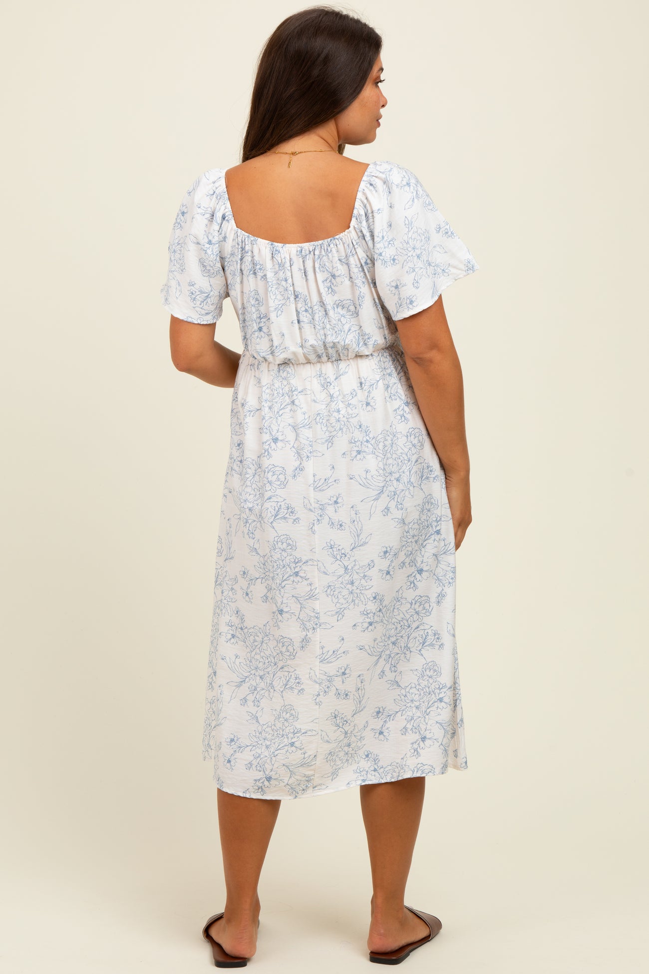 Embrace comfort and style with our Ivory/Blue Printed Maternity Dress, designed to celebrate your pregnancy journey. Featuring a delicate blue floral print on a soft ivory background, this dress offers a breezy, elegant look perfect for any occasion. The smocked bodice ensures a flattering fit while accommodating your growing bump, and the flutter sleeves add a touch of feminine charm. Practical side pockets provide convenience without compromising style. Made from lightweight, breathable fabric, it keeps you cool and comfortable all day long. Dress it up or down for effortless maternity fashion.