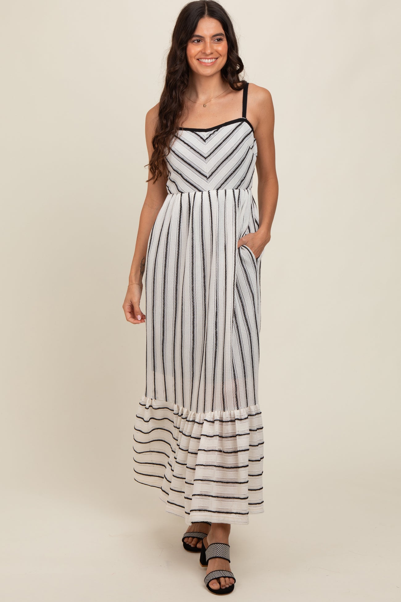 Ivory Chevron Striped Crochet Knit Dress
