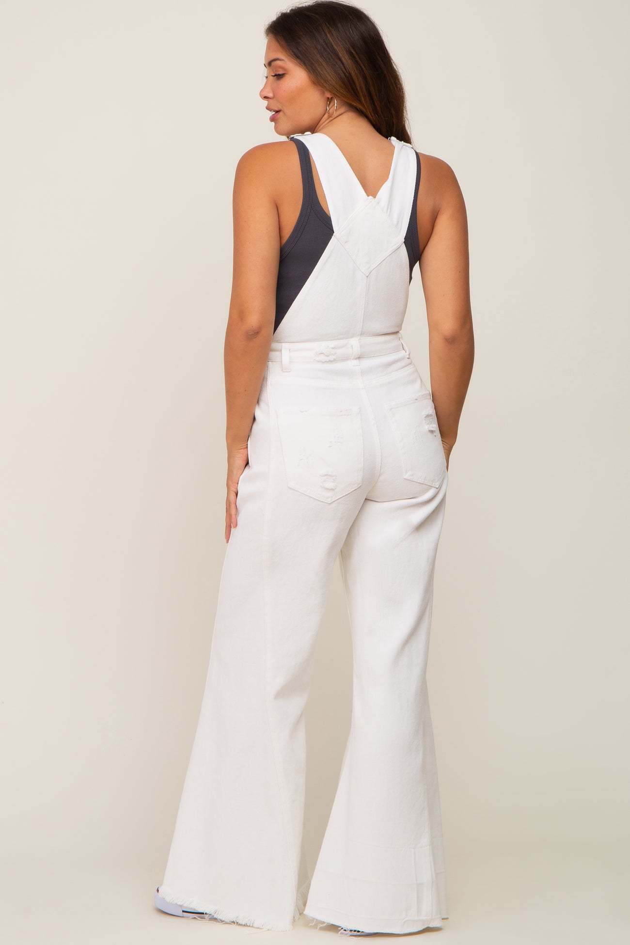 Ivory Denim Distressed Wide Leg Maternity Overalls